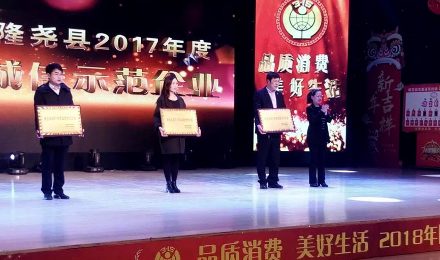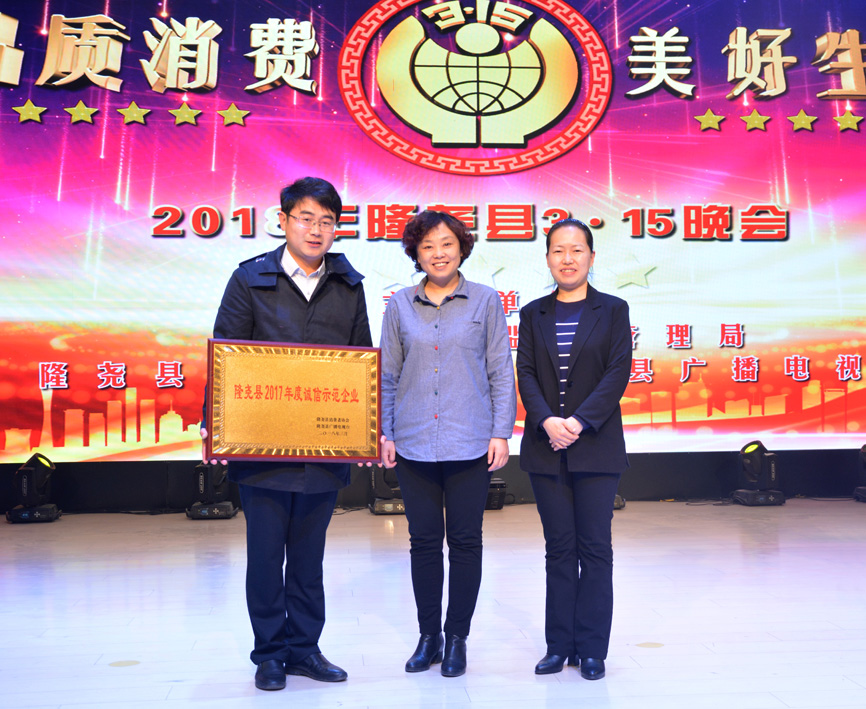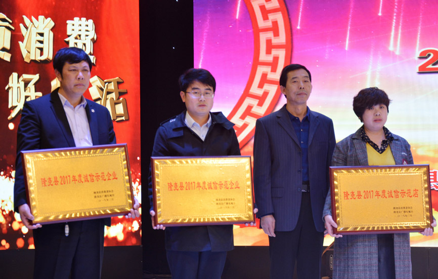 會(huì)上,發(fā)布了消費(fèi)警示,質(zhì)量抽檢通報(bào),并對群眾投訴名單進(jìn)行了曝光。隨后對誠信經(jīng)營企業(yè)做出表彰。期間播放了青龍劍釘業(yè)宣傳片,并為企業(yè)頒發(fā)了“隆堯縣2017年度誠信示范企業(yè)”獎(jiǎng)牌。