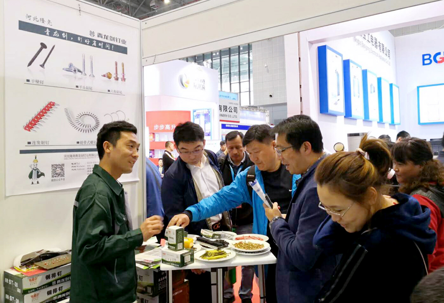 展會(huì)上展示了青龍劍釘業(yè)的全系列產(chǎn)品,裝修用釘、建筑用釘、螺絲釘。并推出新產(chǎn)品,鏈帶干壁釘、高強(qiáng)度連發(fā)射釘、吊頂一體射釘。在青龍劍工作人員的講解并演示下,吸引了眾多參展者的駐足,對(duì)青龍劍產(chǎn)品產(chǎn)生了極大興趣,并進(jìn)行了詳細(xì)咨詢。